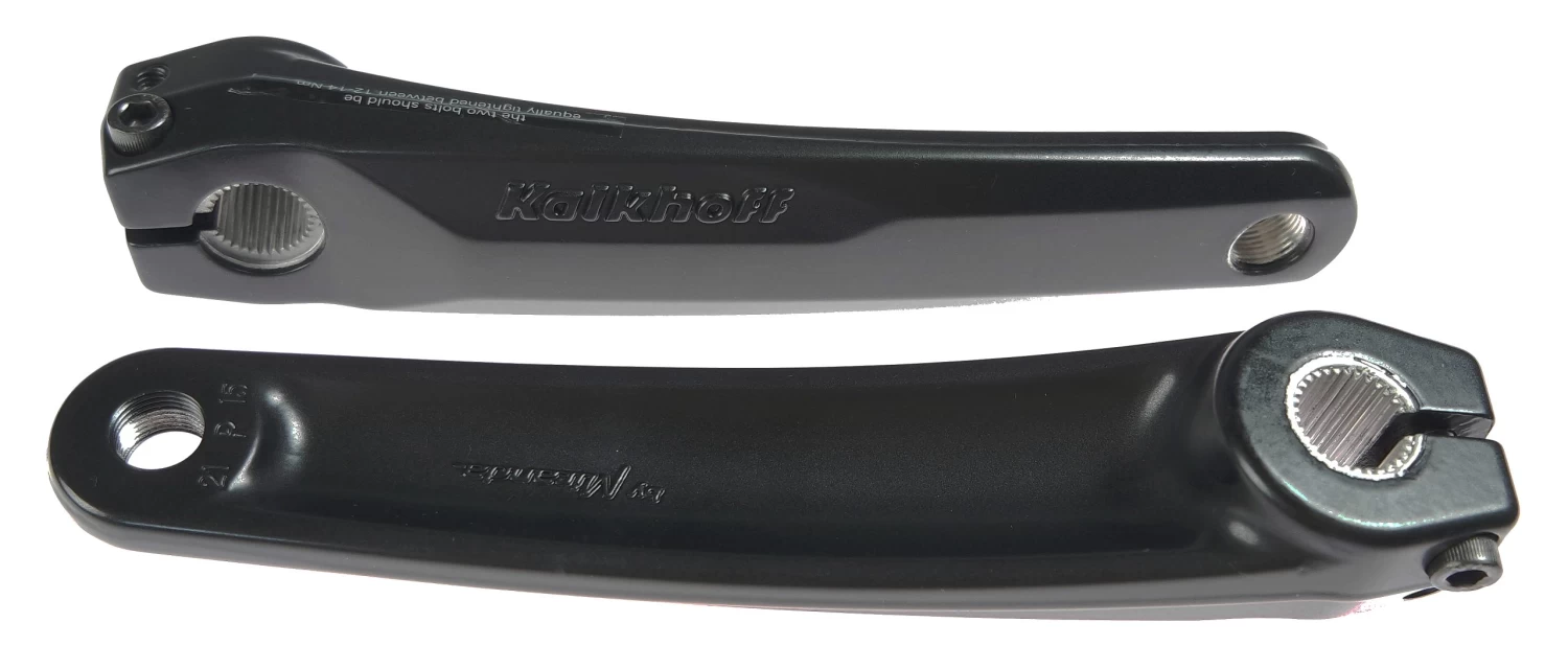 Original Kalkhoff multi-edge crank set for electric bikes with Kalkhoff, Impulse, Raleigh and Panasonic mid-mounted motors.