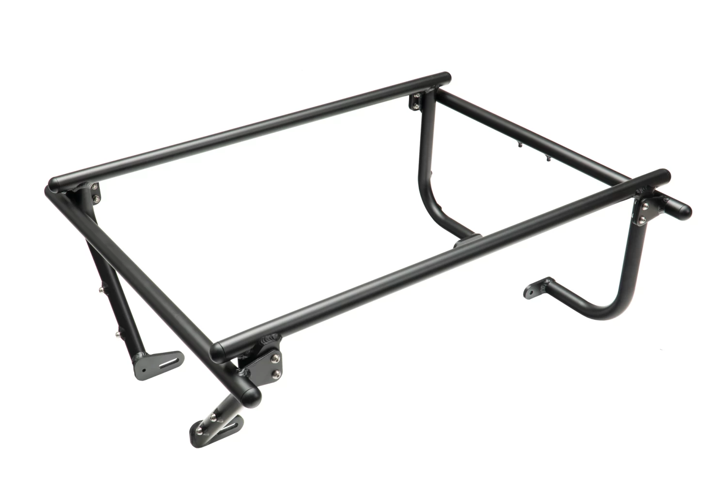 - Stabile Aluminium-Rohre Konstruktion mit der Möglichkeit größere Gegenstände mittels einer Riemenbefestigung zu befestigen